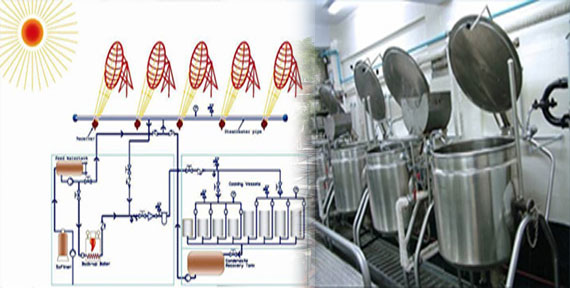 Direct Cooking System consists of concentrating reflectors that move to track the movement of the Sun. In STRE Direct Cooking System the reflected and concentrated Sunlight enters a nearby kitchen directly to strike a cooking pot or frying surface. Each morning, the operator rotates the concentrating reflector back to a starting position in which the reflected beam is aligned with the axis of rotation of the reflector, and starts the Tracking mechanism (Electronic). Every few days the operator adjusts the angle between the axis of rotation and the concentrating reflector to accommodate the seasonal variation in the height of the Sun. Once the reflected beam is aligned with the axis of rotation of the concentrating reflector and the timer is in motion, the reflected beam remains aligned with the axis of rotation all day. The reflecting surface of the concentrating reflector consists of a number of facets, usually flat Al. glass mirrors. A concrete pad and a welded steel space frame provide support for the concentrating reflector. The area of the concentrating reflectors in the configurations shown above is usually about 10 m2 or 16 m2.